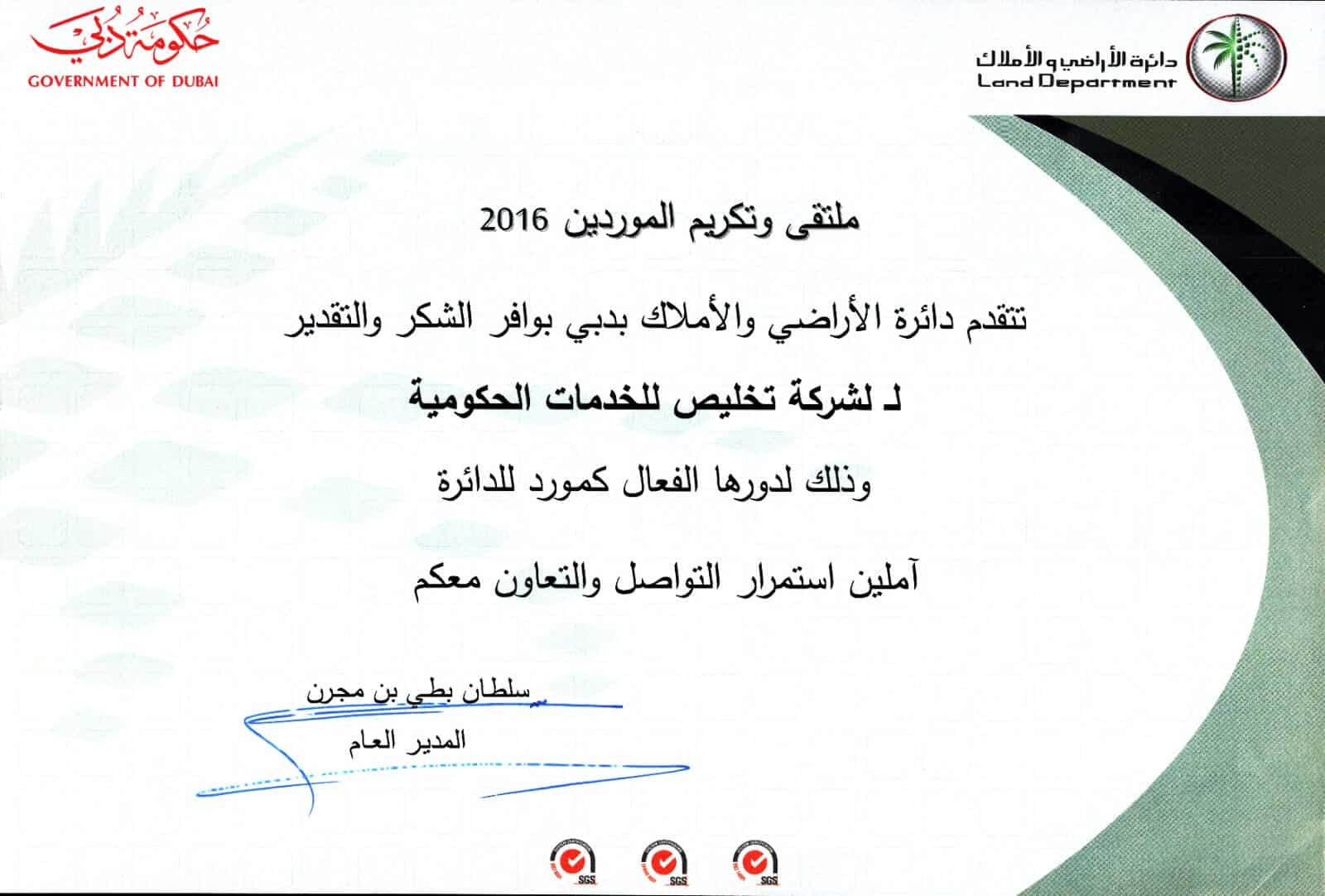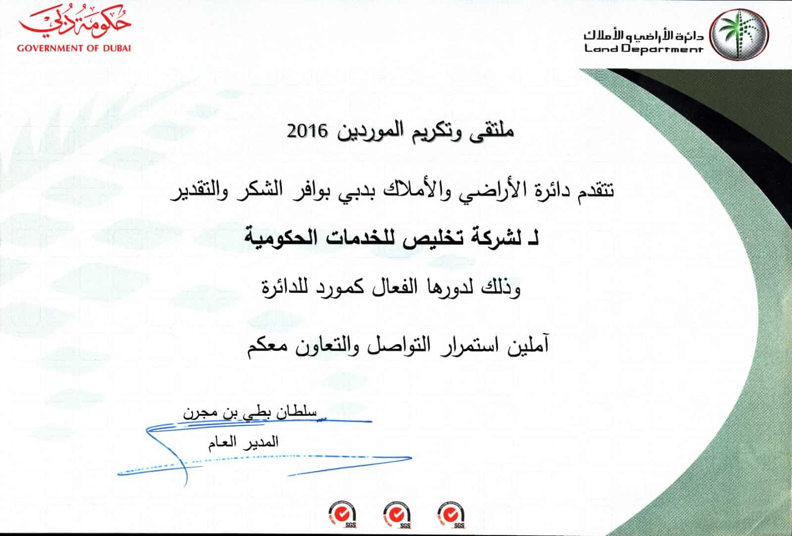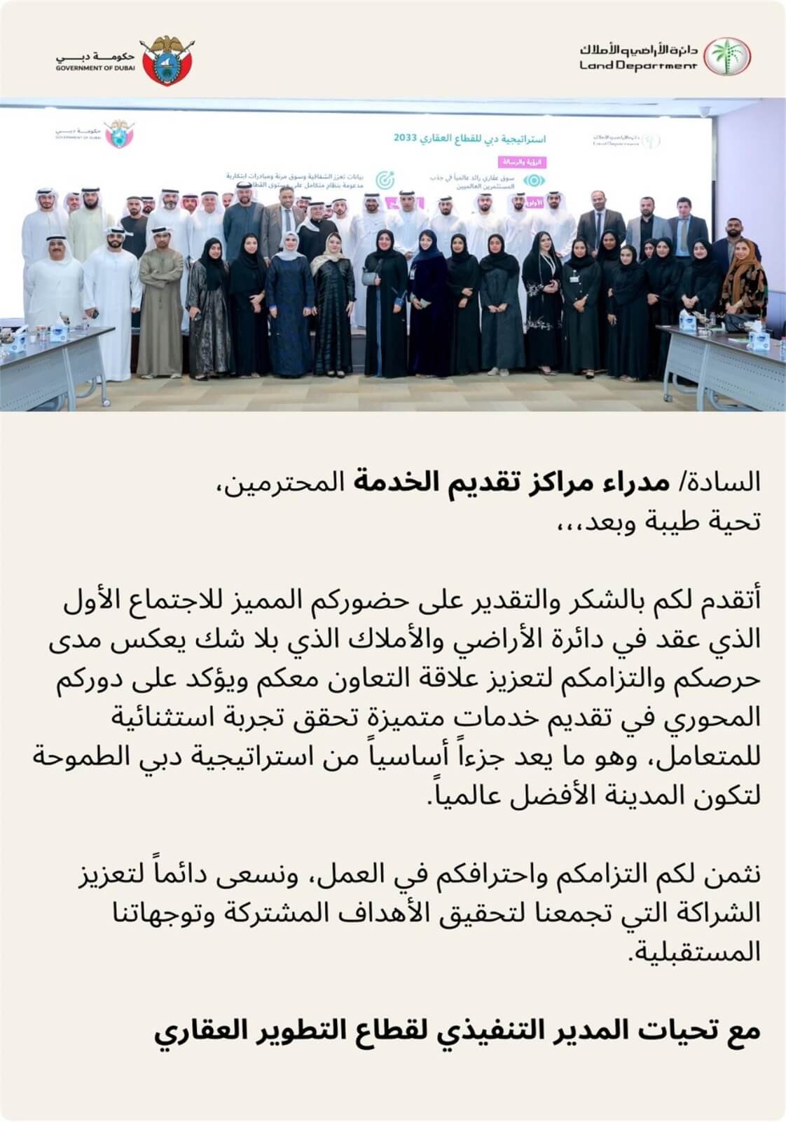 “We are proud of our strong position in the government services sector, recognized by the Dubai Land Department for excellence.