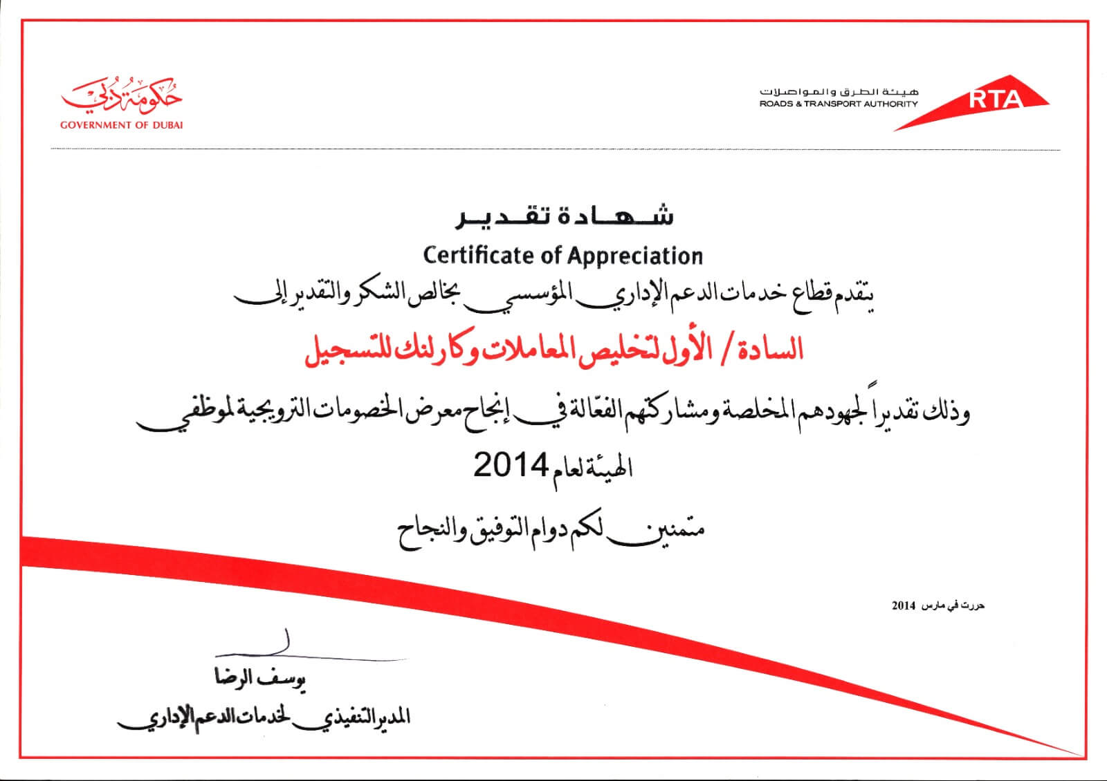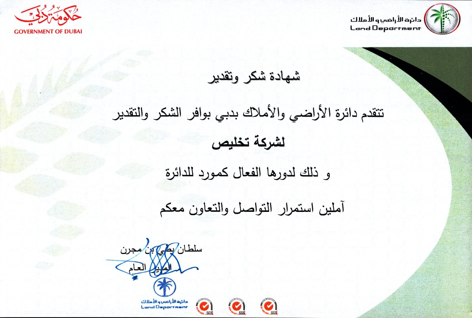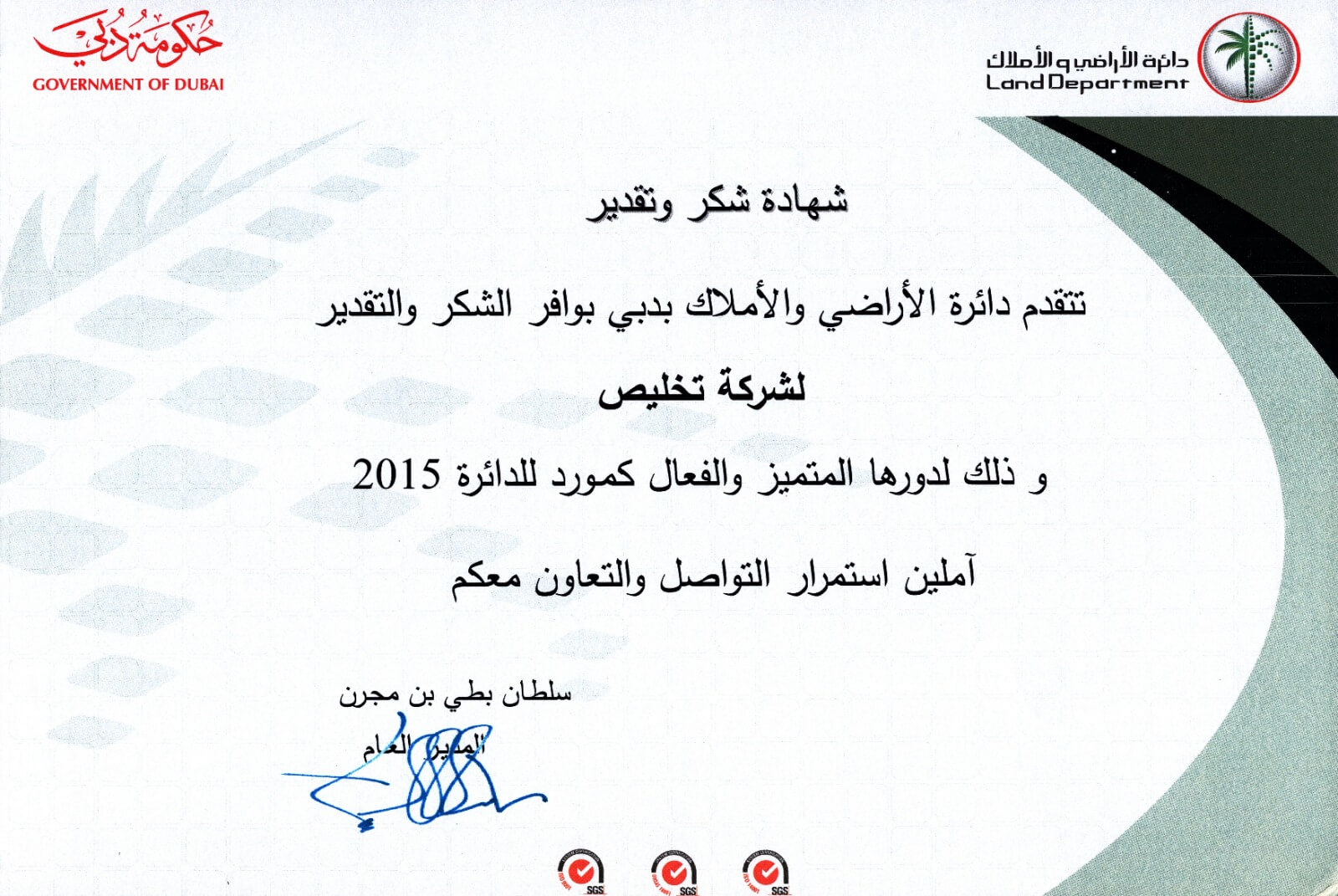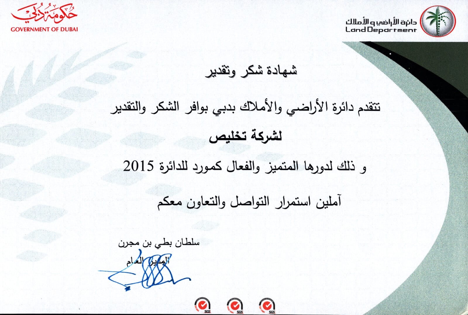 “We are proud of our strong position in the government services sector, recognized by the Dubai Land Department for excellence.